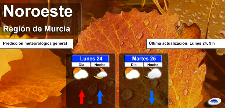Mañana martes, 25 de octubre, por el Noroeste de Murcia, la atmósfera se mantendrá relativamente estable. De nuevo, el sol se alternará con las nubes tipo medio y alto. Viento del sur, de flojo a moderado. Temperaturas mínimas en descenso ligero, y máximas sin cambios importantes.