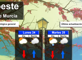 Hoy lunes, 24 de noviembre, ha comenzado el día, y la nueva semana, con nubes y claros por el Noroeste de Murcia. Las temperaturas mínimas han subido en todos los municipios. En el observatorio meteorológico de Cehegín 'ciudad' se ha registrado una mínima oficial de ...