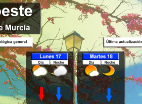 Hoy lunes, 17 de noviembre, ha comenzado el día con nubes y claros por el Noroeste de Murcia. Las temperaturas mínimas han bajado de forma ligera. En el observatorio meteorológico de Cehegín 'ciudad' se ha registrado una mínima oficial de 8.5ºC. En otras poblaciones, mínimas ...