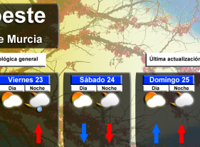 Hoy viernes, 23 de enero, ha comenzado el día, con nubes y claros por el Noroeste de Murcia. Las temperaturas mínimas han subido de forma ligera. En el observatorio meteorológico de Cehegín 'ciudad' se ha registrado una mínima oficial de 7.5ºC. En otras poblaciones, mínimas ...