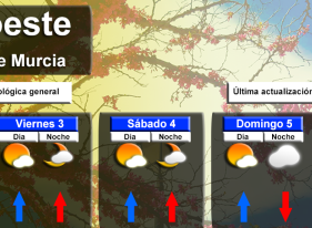 Hoy viernes, 3 de octubre, ha comenzado día con sol y cielo poco nuboso por el Noroeste de Murcia. Las temperaturas mínimas han subido de forma muy ligera. En el observatorio meteorológico de Cehegín 'ciudad' se ha registrado una mínima oficial de 13.5ºC. En otras ...